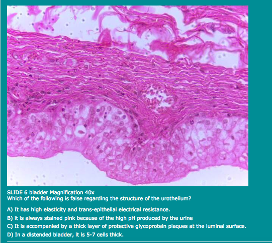 D) In a distended bladder, it is 5-7 cells thick.