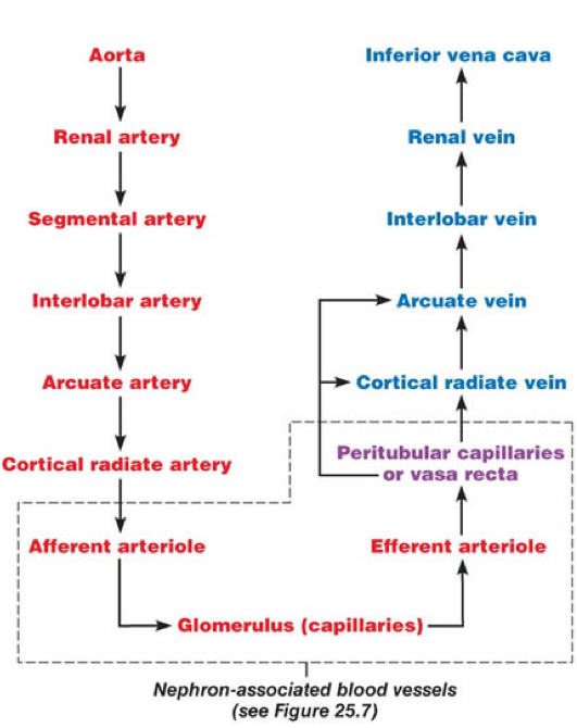 What is the renal blood flow pathway?