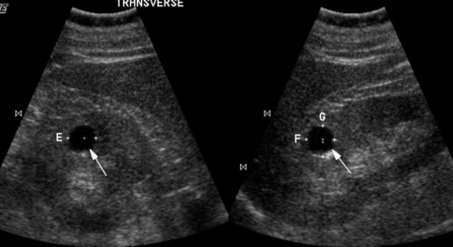 anechoic, smooth walls, posterior enhancement