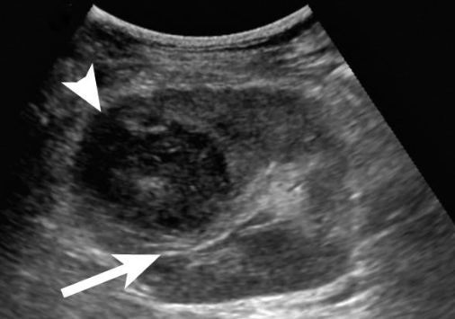 -Anechoic to hypoechoic complex mass