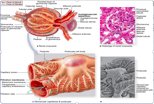 Filtration of plasma occurs across fenestrated endothelium of glomerular capillaries and BM and podocytes of the visceral layer of Bowman’s capsule