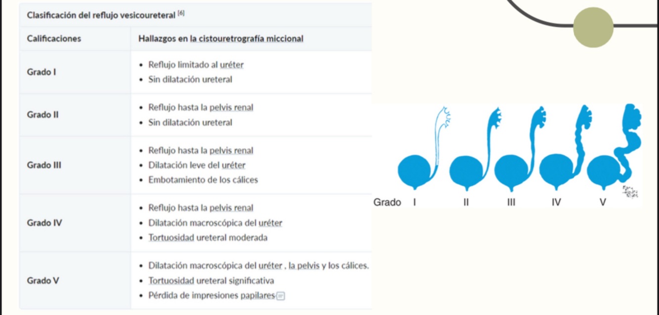 Flujo retrógrado anómalo de la orina desde la vejiga hacia los uréteres e incluso los riñones. Es una condición frecuente en pediatría y puede llevar a infecciones urinarias recurrentes y daño renal si no se trata.