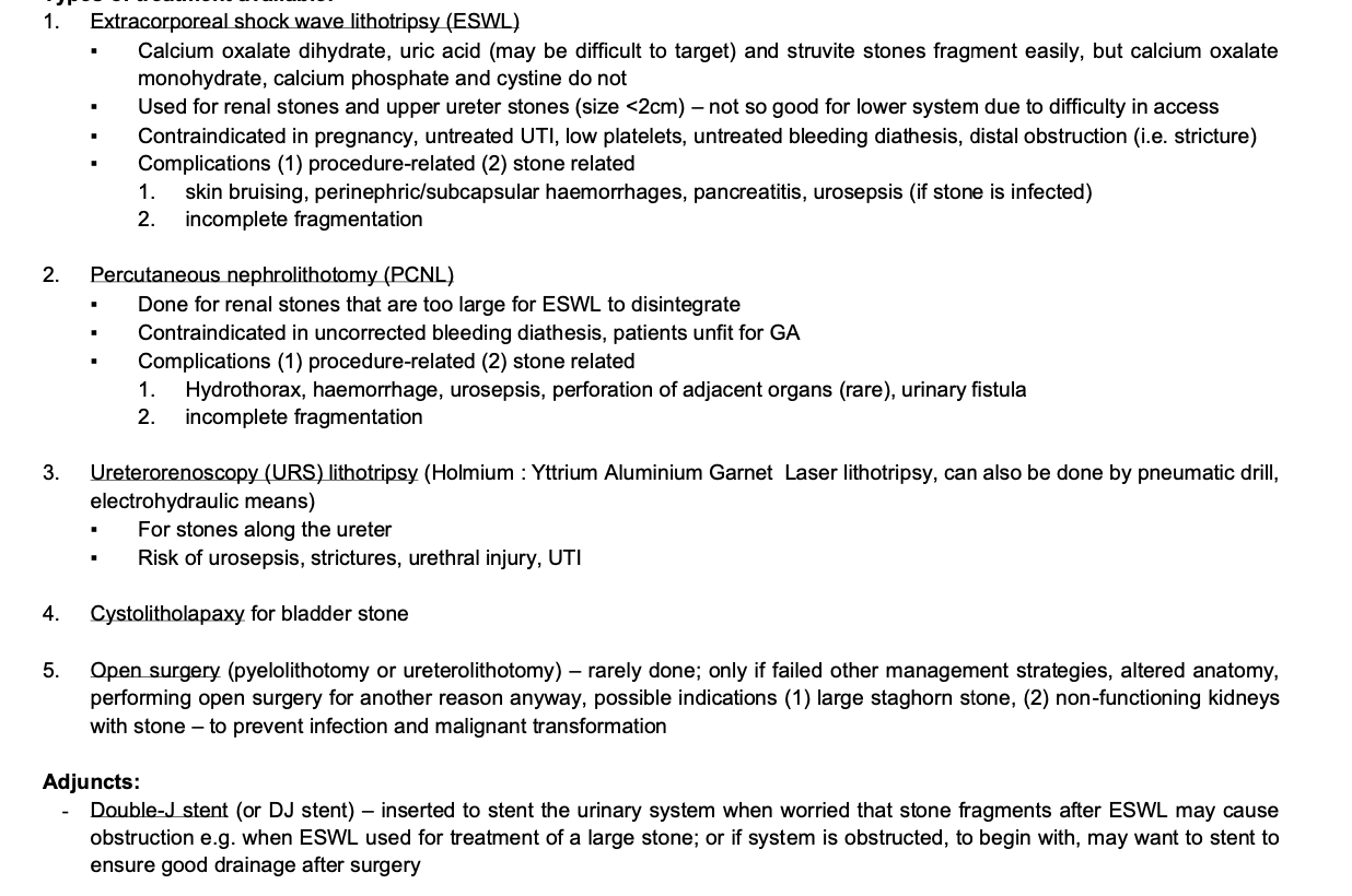 ▪ Calcium stones – thiazide (increase urinary calcium excretion), citrate, low sodium diet