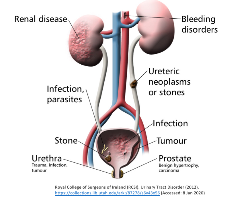 Neoplastic- cancer of kidney, bladder, prostate and testes