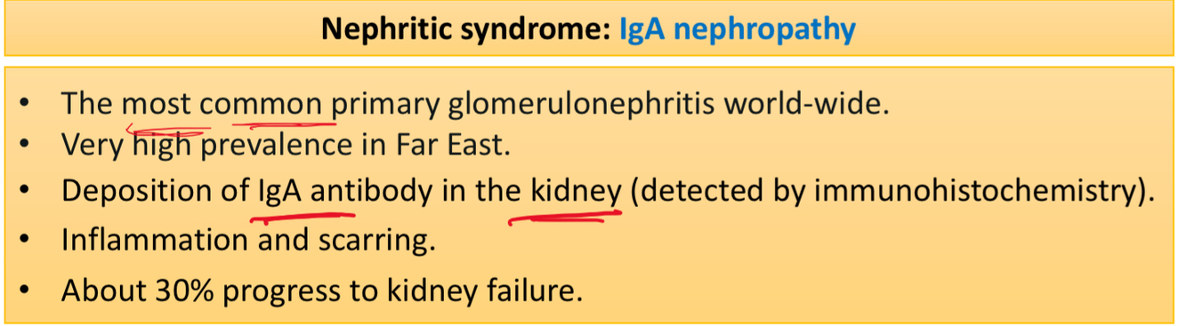 Describe the epidemiology and component of IgA nephropathy