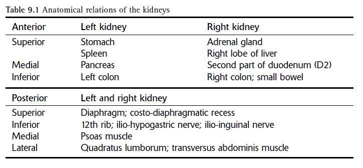 anatomical relations of the kidney: