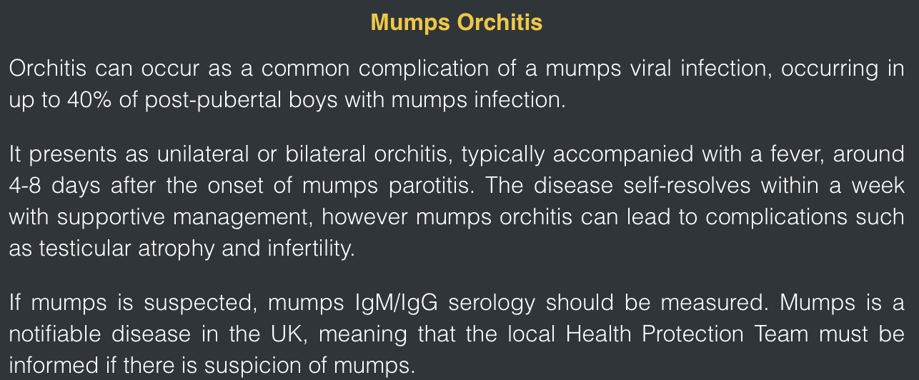 *It is often worth clarifying with the patient the normal position of their testes in their scrotum (i.e. which testis normally sits higher)