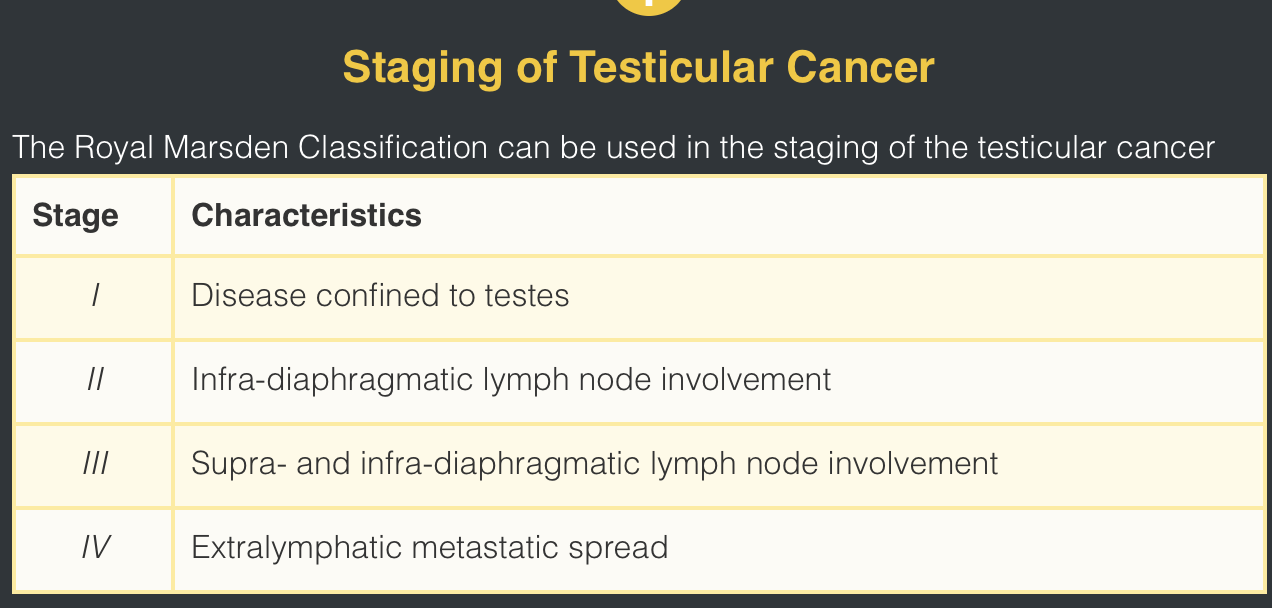 *Lymphatic drainage of the testes is to the para-aortic nodes, therefore localised lymphadenopathy may not be present, even in cases of metastatic disease