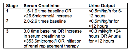 What are the different stages of AKI?