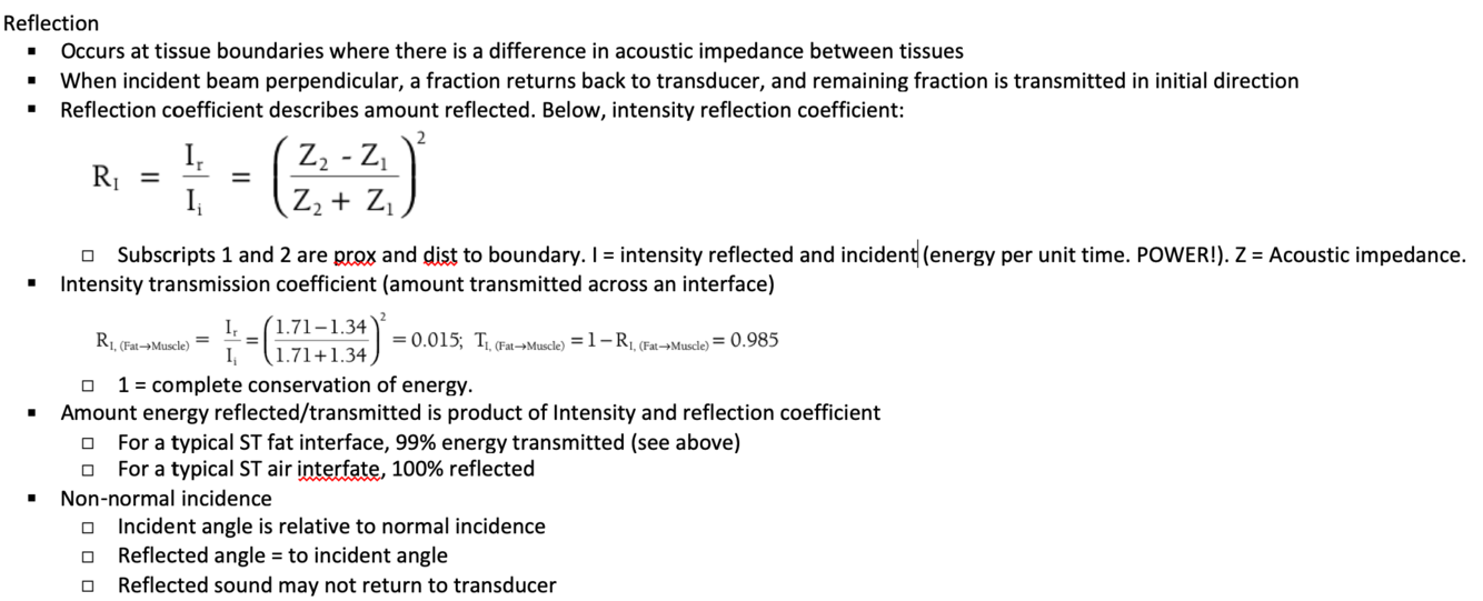 Define reflection. What features dictate reflectivitity? What is the reflection coefficient calculation?