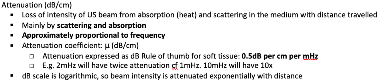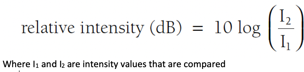 dB = RELATIVE INTENSITY. Comparison of intensities converted logarithmically. USED FOR ATTENUATION COEFFICIENT