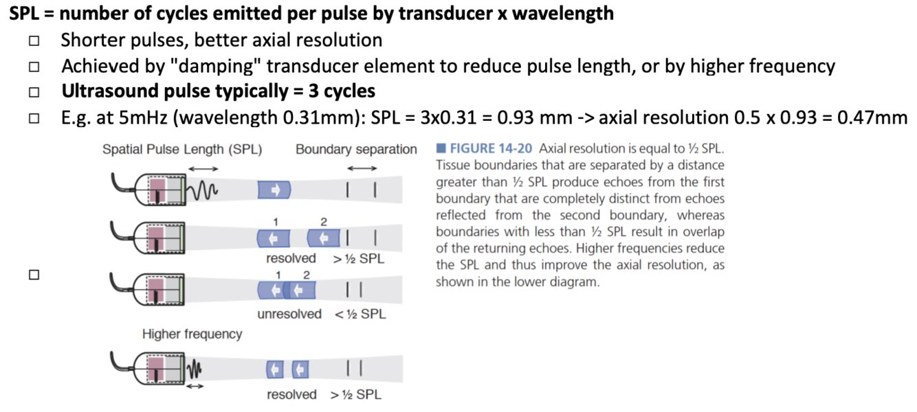 Calculate SPL and resolution for 5MHz signal (wavelength 0.31mm) and 3 cycle pulse