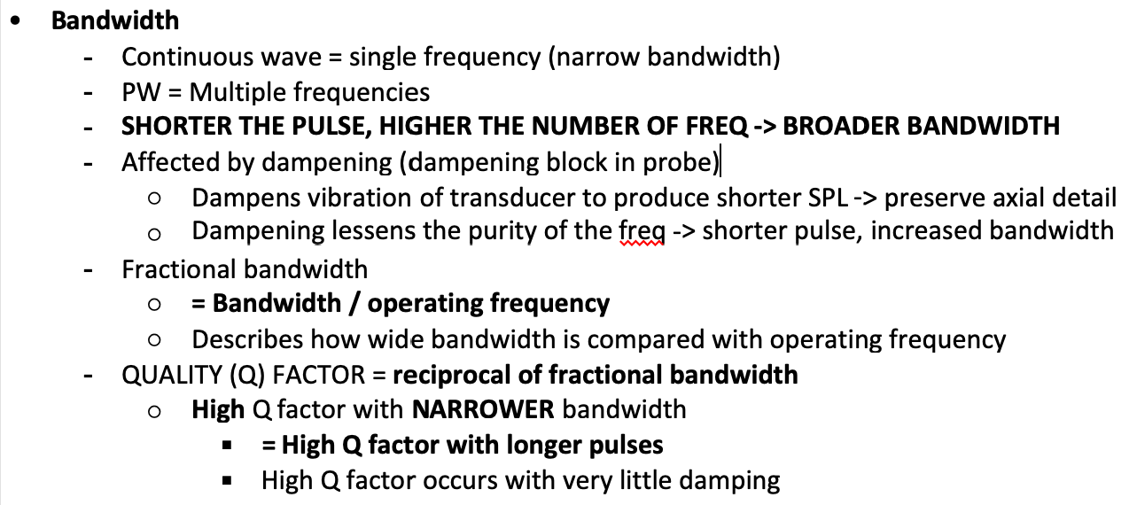 Define bandwidth, fractional bandwidth, and quality factor (Q)