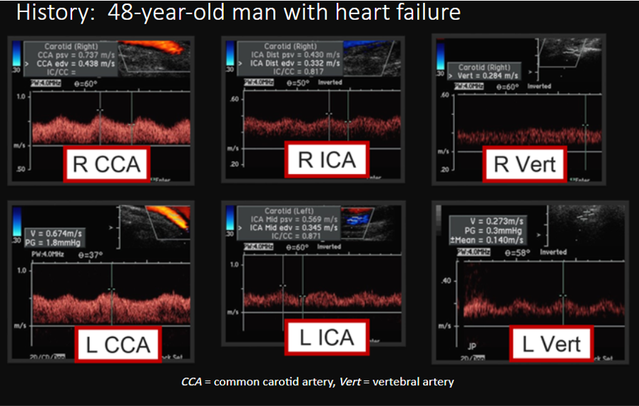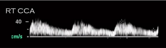 carotid and vertebral artries (lower resistance waveforms –> lower RI)