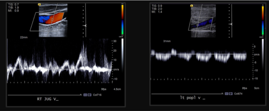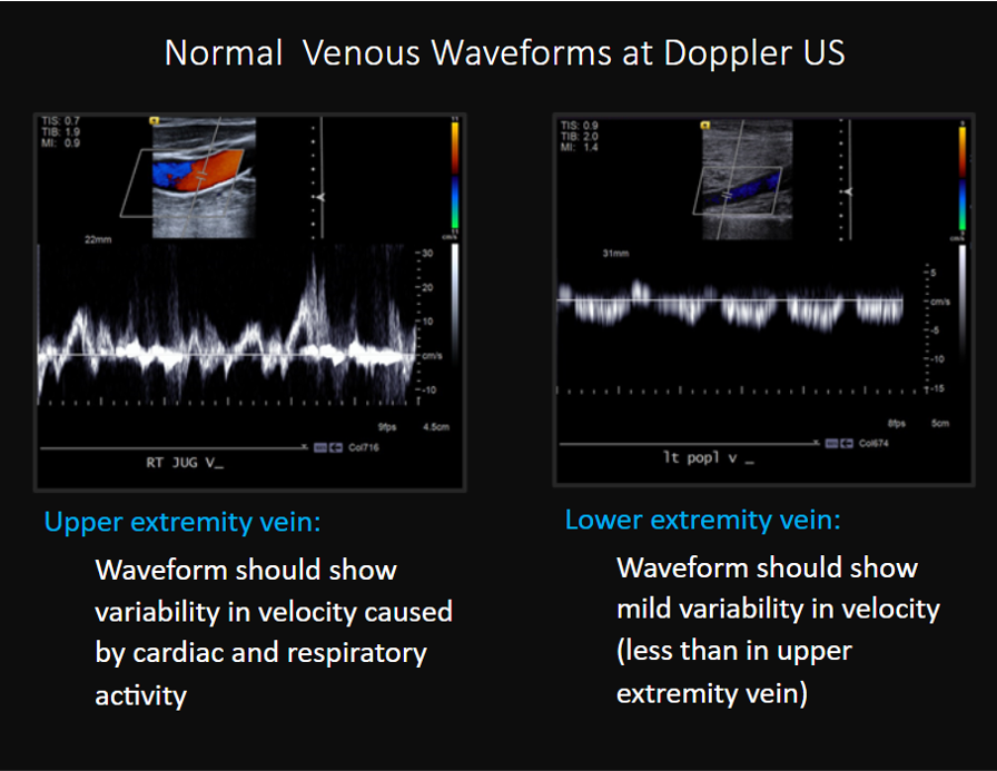 both of these are normal waveforms. Which is an upper and which is a lower extremity vein?