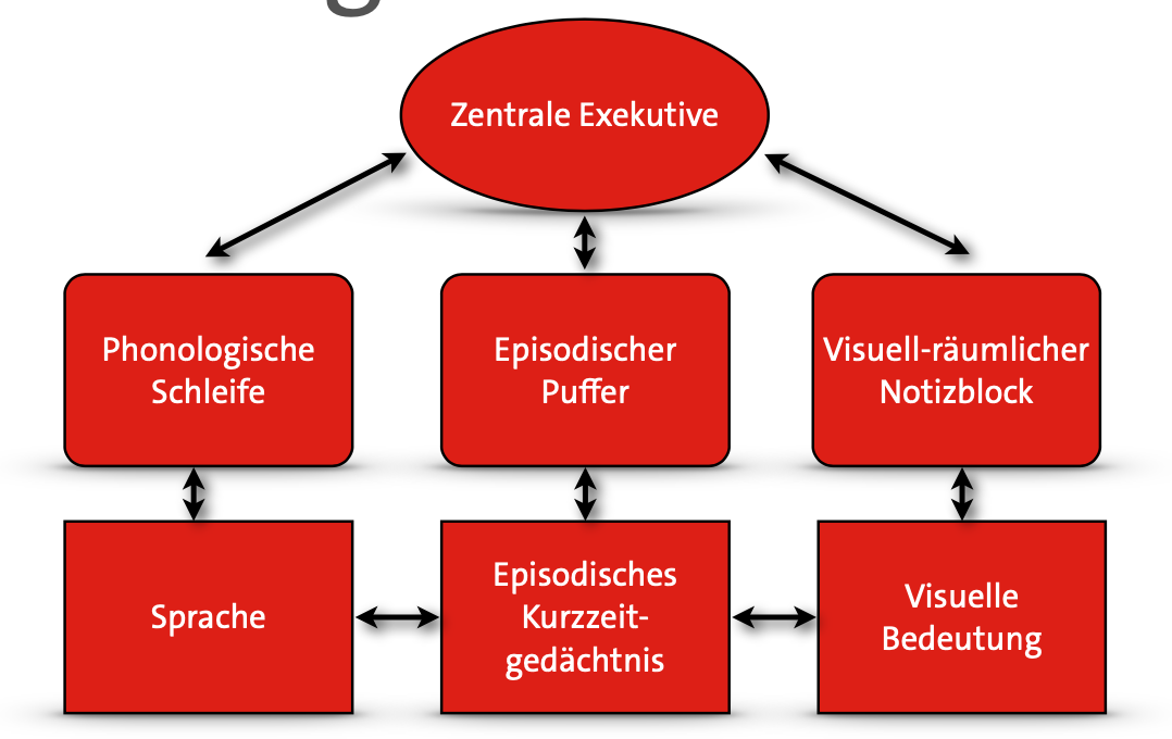 Nenn die Elemente des Arbeitsgedächtnismodells von Baddeley und Hitch