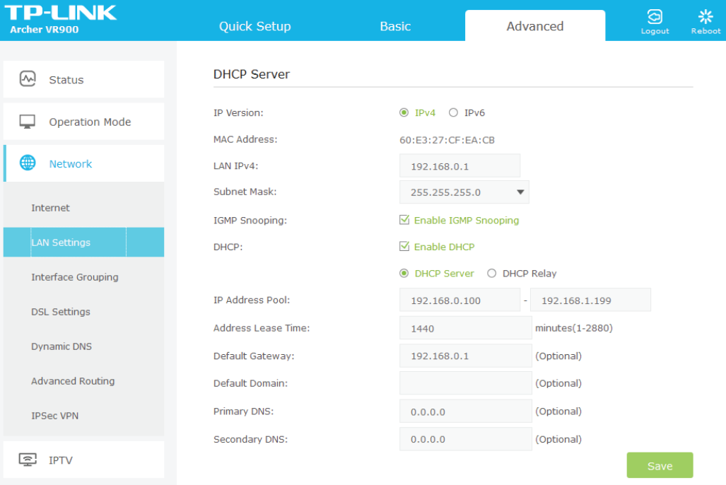 * public digital modem interface to connect to the ISP (ISP’s DHCP server).