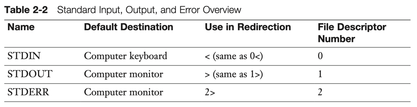 The shell also has default destinations to send error messages to and to accept input. what are these?