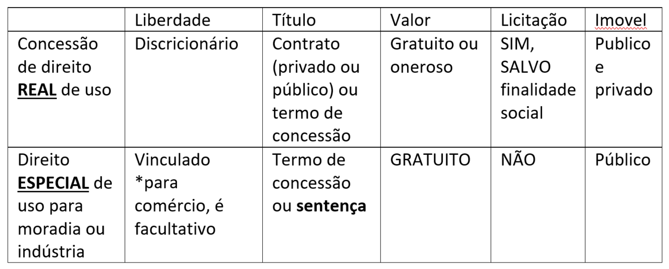 Concessão de direito REAL de uso x