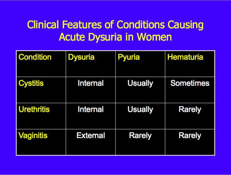 If a patient has dysuria, which three infections should be on your differential?