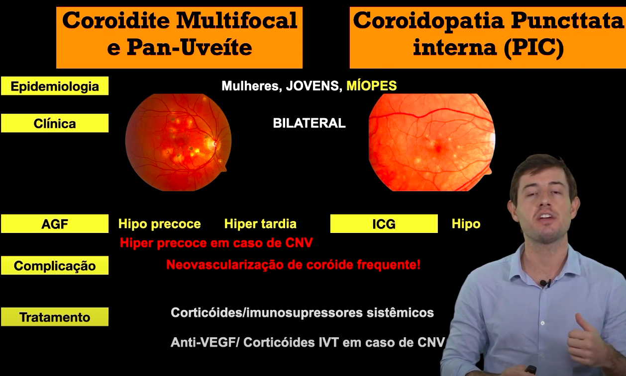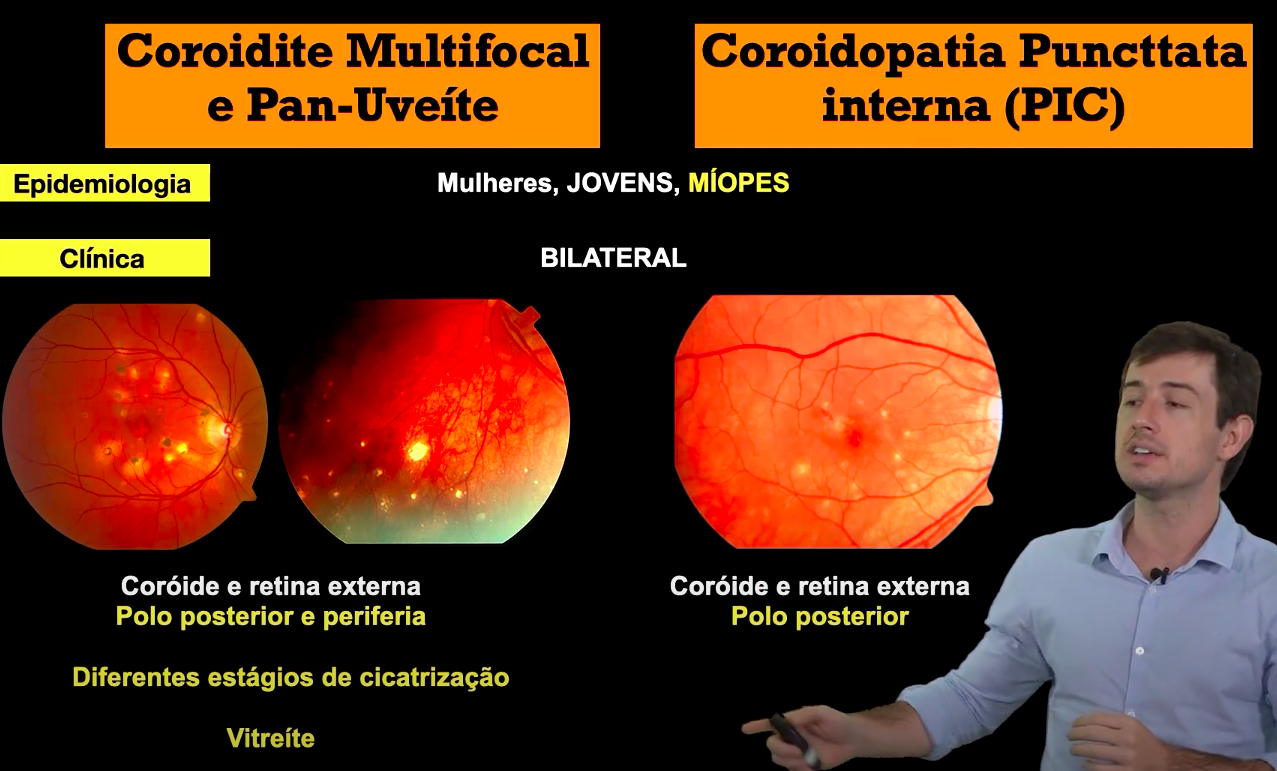 QUAL EPIDEMIOLOGIA, CLINICA E DIFERENCAS DA COROIDITE MULTIFOCAL E PAN UVEITE (CMF) COM COROIDOPATIA PUNTATA INTERNA(PIC) ??