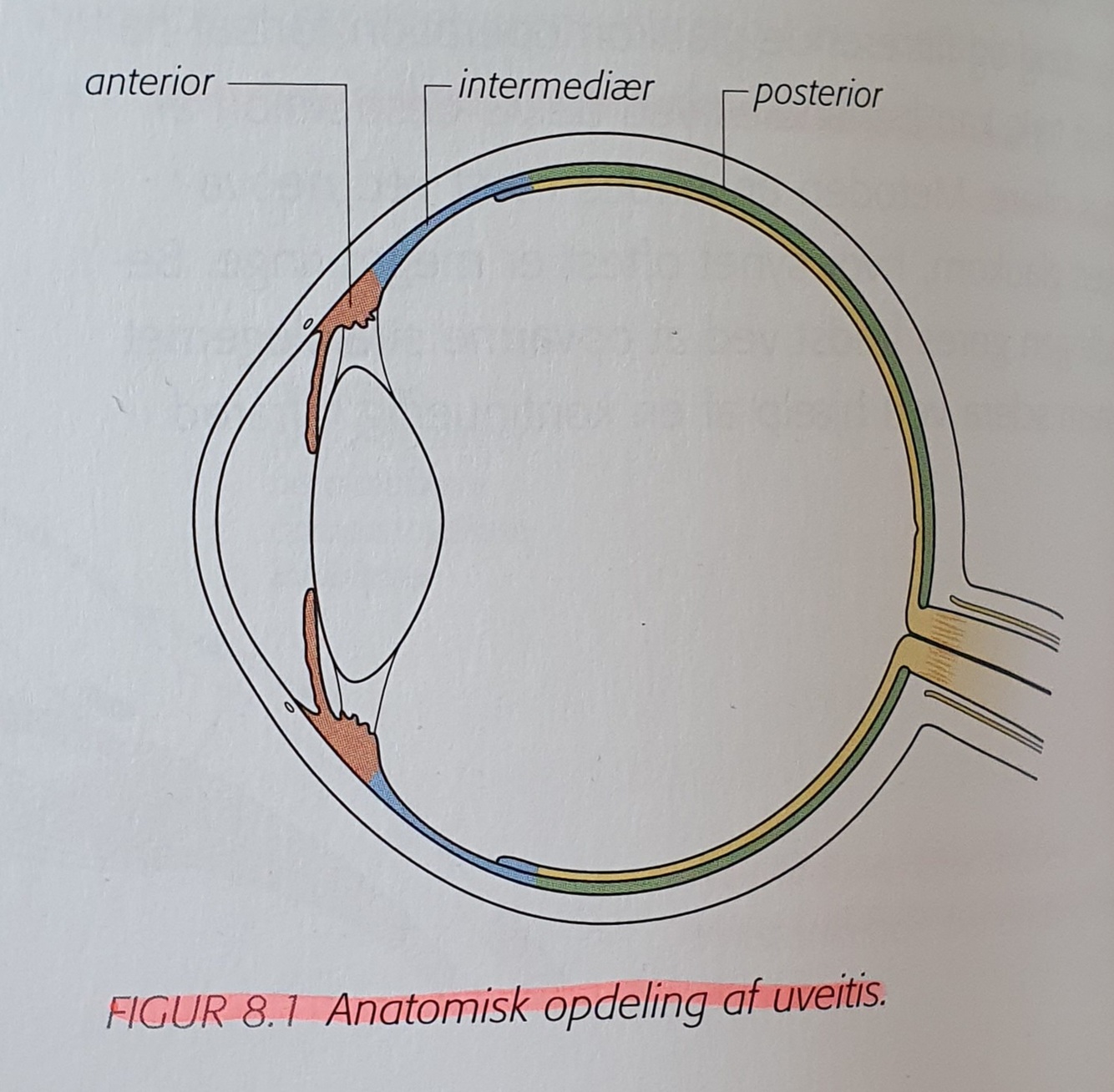 Angiv for anterior, intermediær og posterior uveitis: