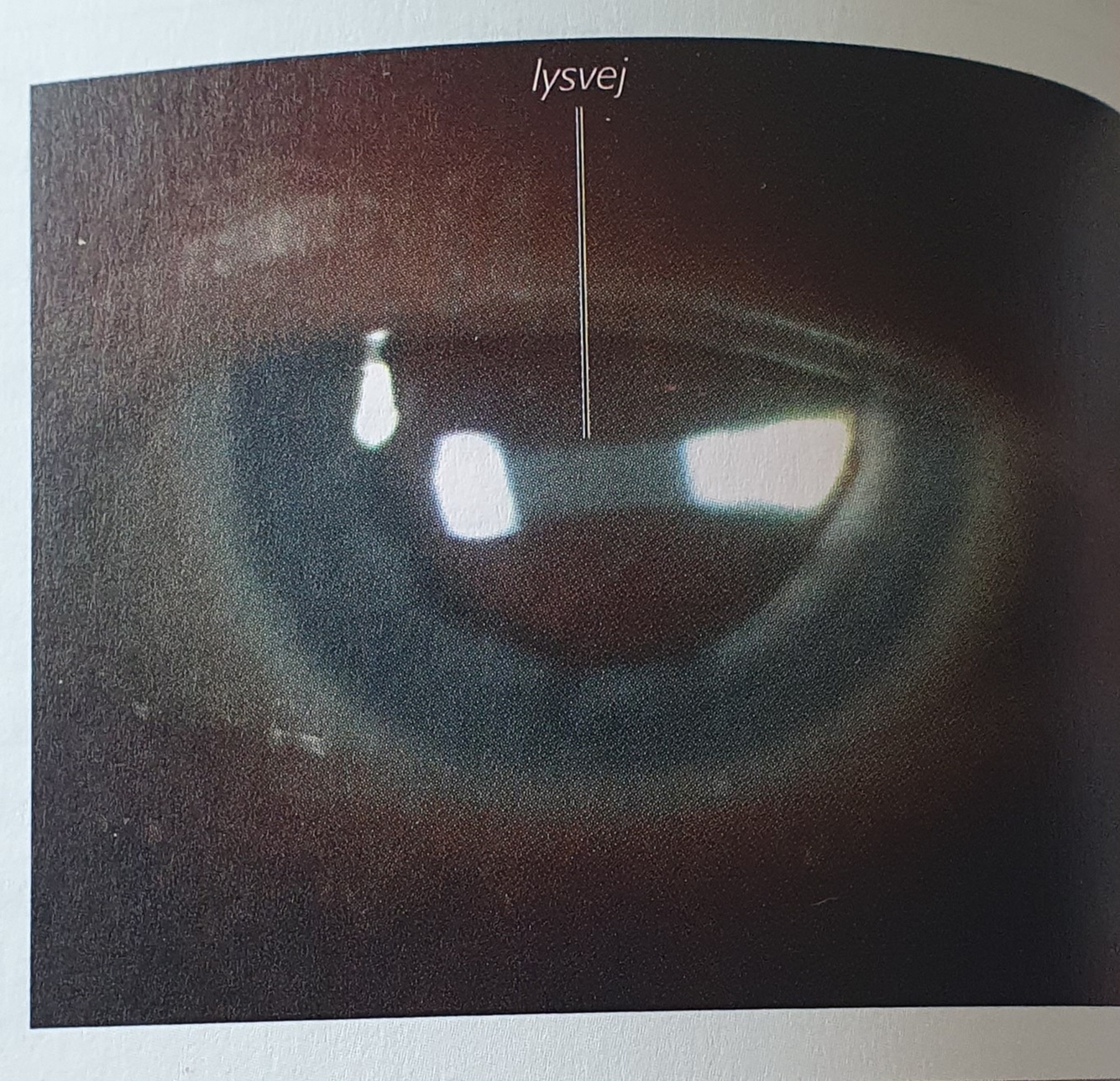 Pupillen vil i starten være normalt lysreagerende, men lille pga ødem og spasmer i iris.