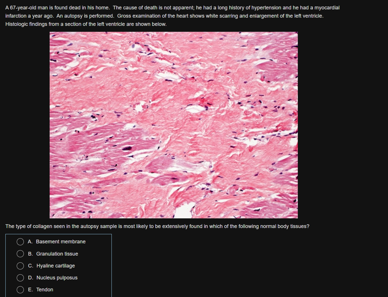 (Choice A) Calcification of the mitral valve annulus may occur with aging, and can be accelerated by hypertension or advanced kidney disease. It is usually an incidental finding that does not affect mitral valve function.