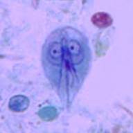 multiple cysts and several flagellated trophozoites with 2 nuclei
