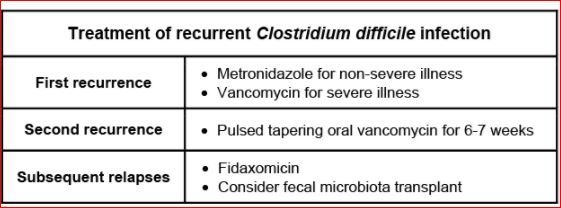 The management of a first relapse of Clostridum difficile infection is the same as as the inital episode.