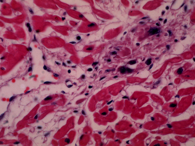 scant inflammatory cells and interstitial fibrosis T cell and B cell mediated (ab mediated too) occurs months to years after a solid organ transplant
