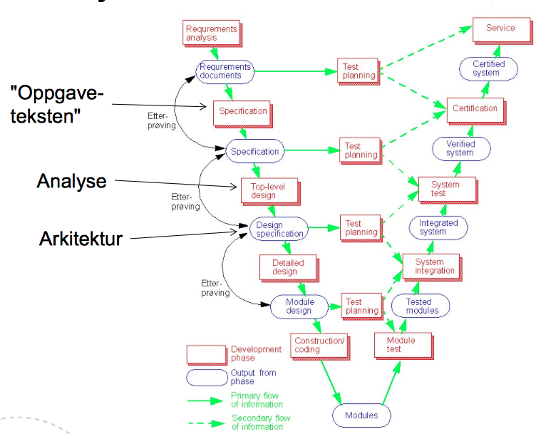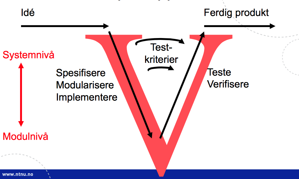 I hvilken av produktets livsfaser inngår V-modellen (slik det foreleses)?