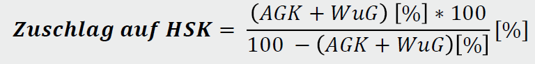 ▪ Der Prozentsatz b für AGK und W+G bezogen auf die Herstellkosten ergibt sich zu: