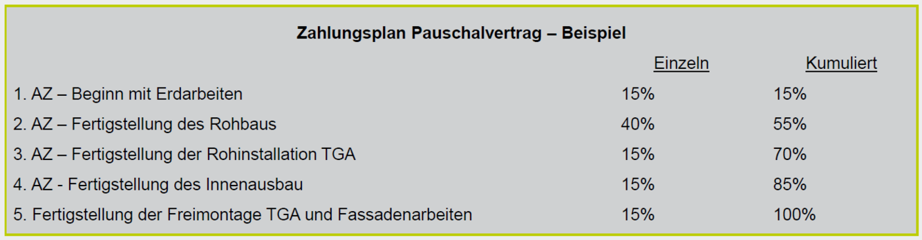 ▪ Zahlung von Abschlagszahlung bei Pauschalverträgen – Zahlungsplan
