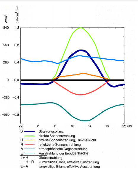 Radiation balance – diurnal course: