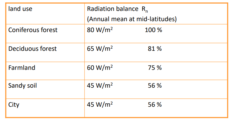 Strahlungsbilanz - verschiedene Landnutzungsarten: