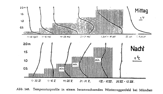 Air temperature profiles in plant stands