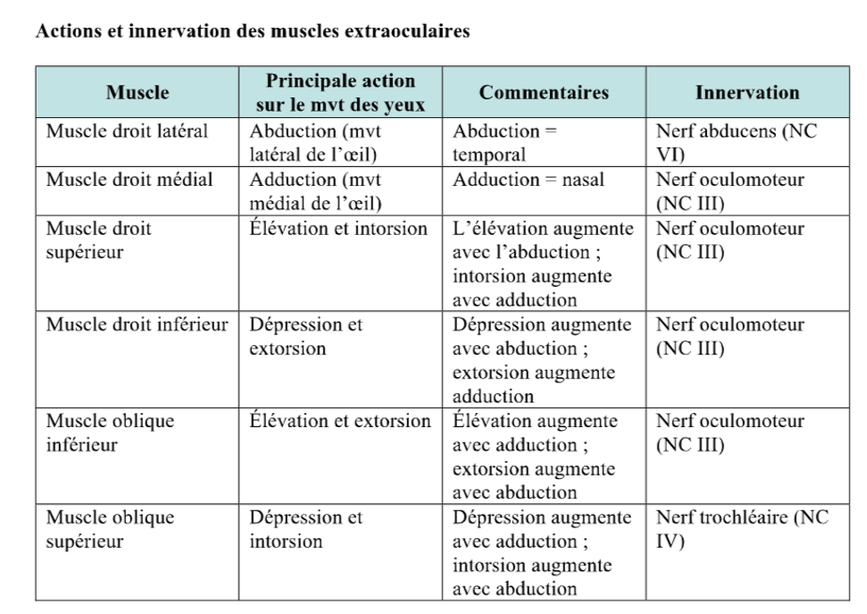 quels nerfs s’occupent de l’intorsion et de l’extorsion de l’oeil