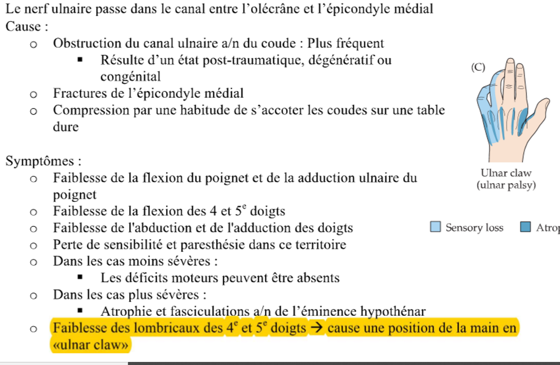 une atteinte du nerf ulnaire va ressembler à quoi?
