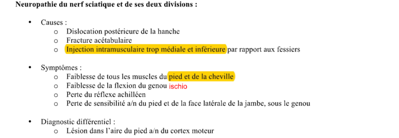 une compression du nerf sciatique va ammener faiblesse de tous les muscles ____ et ____