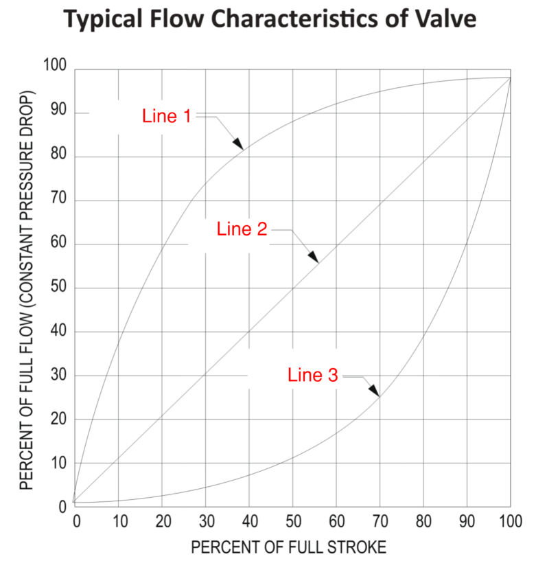 Line 3 represents which common control valve flow characteristic?