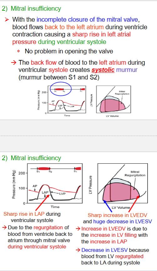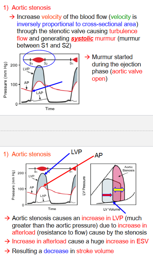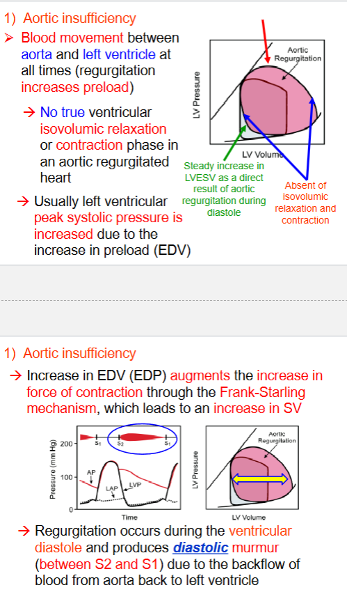 -Incomplete closure of aortic valve gives rise to regurgitation of blood back into left ventricle during diastole (aortic pressure is higher than that of the left ventricle during ventricular diastole), no problem opening valve