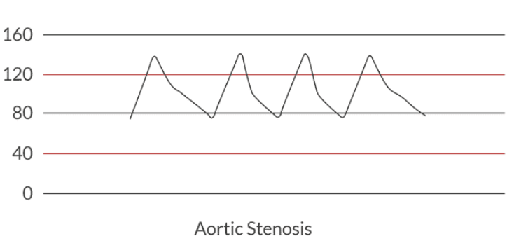pulsus parvus (waveform of small amplitude and narrow PP)