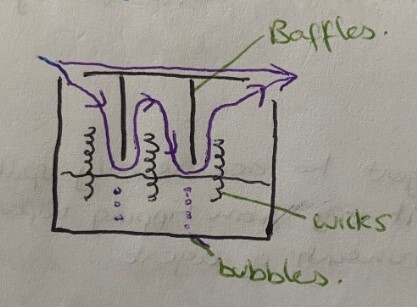 - vapour not being fully saturated - would lead to inaccurate % at the end. -solved with wicks, baffles, bubbles