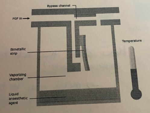 variable bypass - fraction of FGF is diverted into a vapourising chamber. becomes saturated with vapour. then regoins the remainder of FGF to give controlled % of volatile