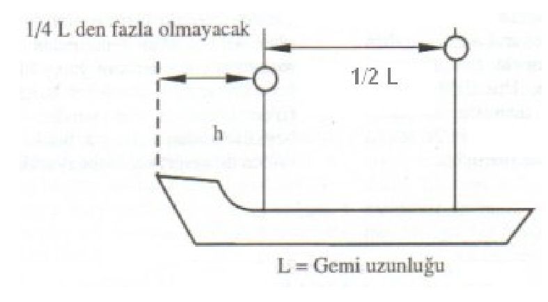 boyu 160 m olan bir geminin kic silyon fenerinin yatay konumu geminin bas tarafindan ne kadar geride olmalidir