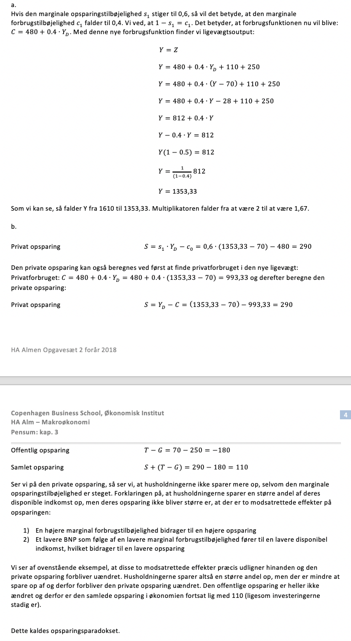 Ifølge denne simple model af varemarkedet i en lukket økonomi på kort sig vil efterspørgslen efter indenlandske varer falde og dermed også BNP, hvis husholdningerne beslutter at opspare en større andel af deres disponible indkomst, dvs. hvis den marginale opsparingstilbøjelighed stiger.