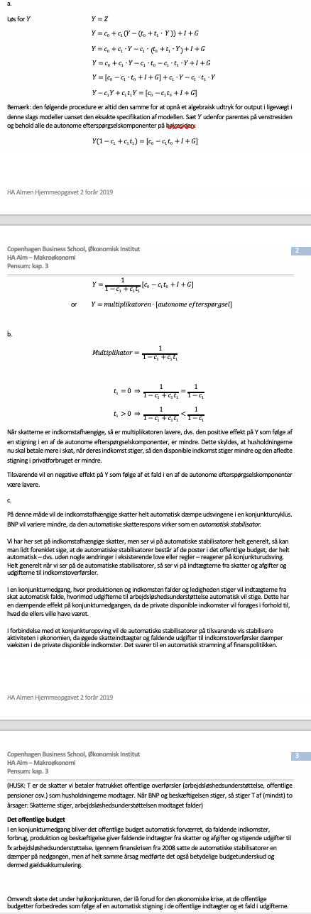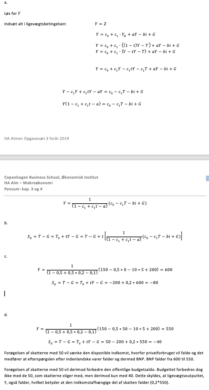 (HUSK: T er de skatter vi betaler fratrukket offentlige overførsler (arbejdsløshedsunderstøttelse, offentlige pensioner osv.) som husholdningerne modtager. Når BNP og beskæftigelsen stiger, så stiger T af (mindst) to årsager: Skatterne stiger, arbejdsløshedsunderstøttelsen modtaget falder)