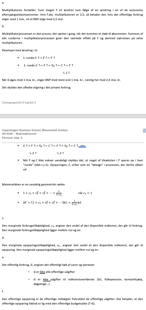 Tilsvarende vil en negative effekt på Y som følge af et fald i en af de autonome efterspørgselskomponenter være lavere.