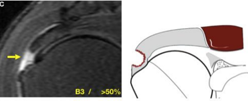 Q. Una lesión osteocondral que compromete más del 50% del espesor total del cartílago corresponde a: